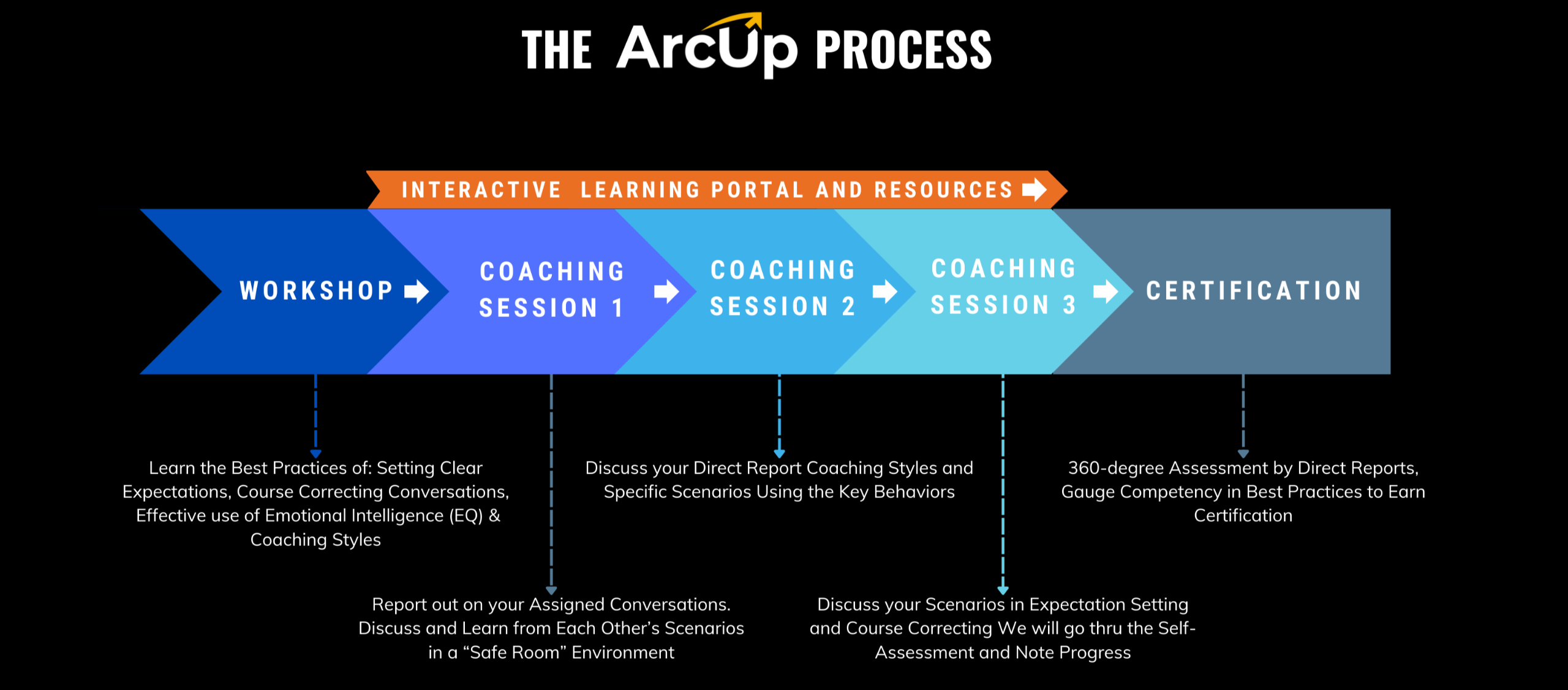 All of the above is why we created The ArcUp Leadership System. ArcUp is a system that will instill the best practices of leading in all of your team and ensure they will be engrained in their everyday Leadership style.. This is accomplished via a Workshop, follow up coaching sessions, online learning portal and certification.